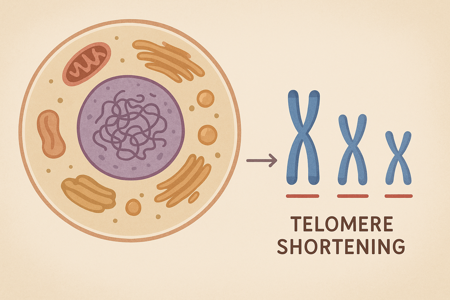 노화 연구의 출발점은 세포 분열의 한계에서 찾을 수 있다. 인간의 세포는 무한히 분열할 수 없으며, 일정 횟수 이상 복제가 이루어지면 분열을 멈춘다. 이를 ‘헤이플릭 한계’라 부른다. 그 중심에는 염색체 말단에 위치한 텔로미어라는 구조가 있다. 텔로미어는 유전 정보를 보호하는 일종의 완충 장치로, 세포가 한 번 분열할 때마다 조금씩 짧아진다. 텔로미어가 한계점에 다다르면 세포는 더 이상 복제할 수 없게 되고, 결국 노화 상태로 전환된다. 이러한 복제 노화는 인체의 전반적인 노화 속도를 결정하는 중요한 생물학적 시계 역할을 한다. 흥미롭게도, 예를 들어 줄기세포나 암세포는 텔로머라아제 효소를 통해 텔로미어를 재생함으로써 ‘세포 불멸성’을 획득한다. 하지만 그 대가는 종종 통제 불가능한 성장, 즉 암의 발생이다.